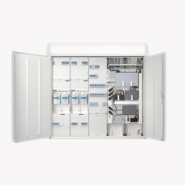 Früher war der Zählerschrank nur für die Verteilung des Stroms, welcher vom Regionalen Energieversorger kam, zuständig. Mit stetig wachsenden Anforderungen und technischen Neuheiten wuchs auch die Technikzentrale von Hager und wurde stetig weiterentwickelt. Sie ist heute weit mehr als nur ein Verteilerkasten. Die Technikzentrale ist das Herz des Hauses. Hier laufen alle Energie- und Datenleitungen zusammen. Ab jetzt lassen sie sich noch besser mit der digitalen Zukunft verbinden, denn die Technikzentrale 4.0 ist perfekt auf die Integration intelligenter Mess- und Kommunikationssysteme vorbereitet. Das macht die Umsetzung der VDE-AR-N 4100 für Sie noch einfacher, sicherer und effizienter.